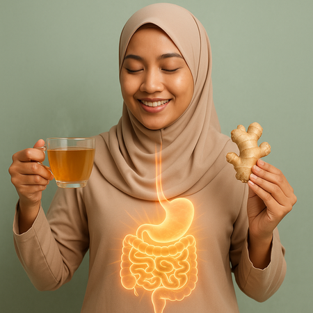 Rasa hangat halia mula tenangkan perut. Badan perlahan-lahan rasa ringan dan lega